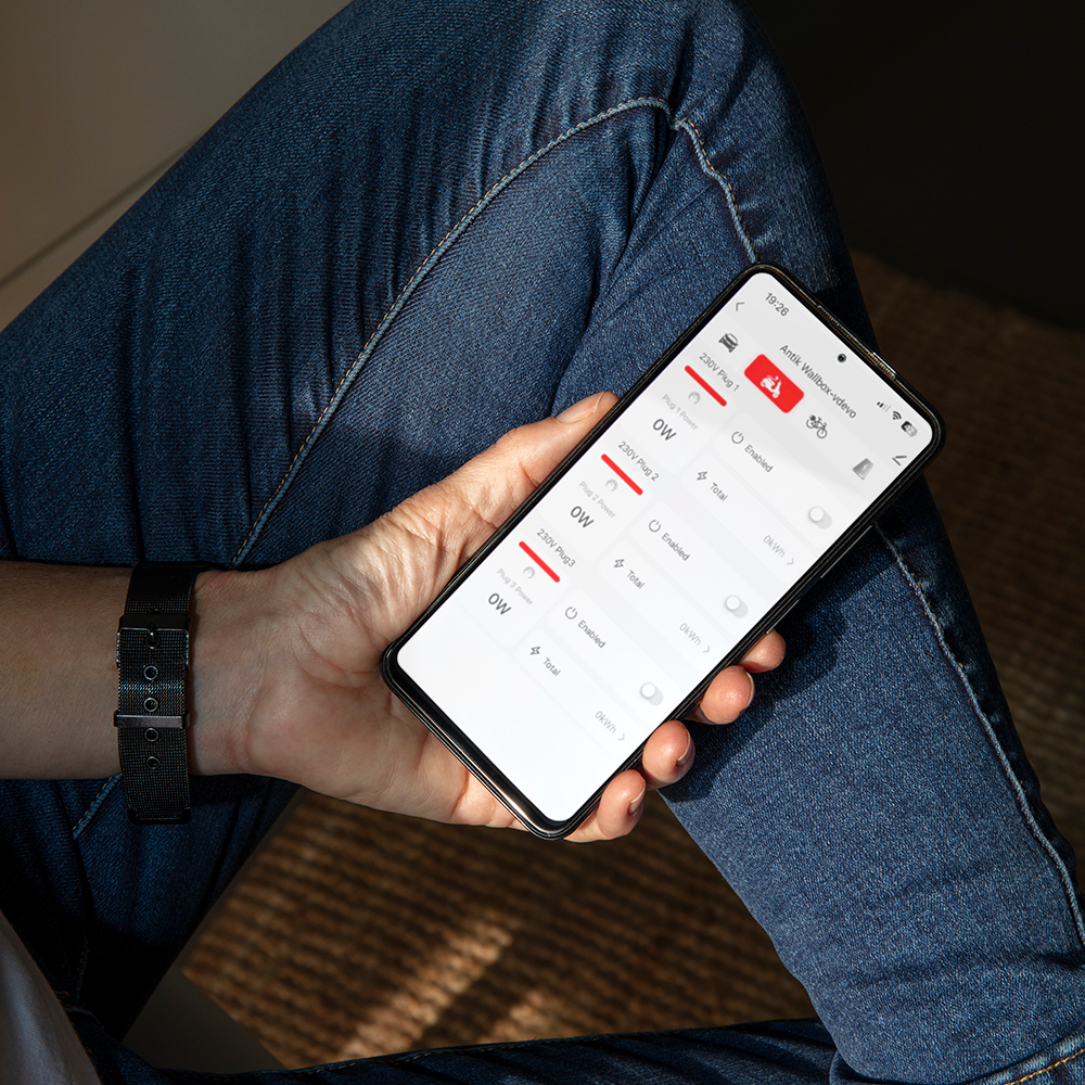 Aplikácia ANTIK SmartHome® vám umožní mať kompletnú kontrolu nad vaším WallBoxom priamo v mobile. Všetky dôležité údaje o nabíjaní, spotrebe a stave zariadenia máte vždy poruke – jednoducho, prehľadne a kedykoľvek.