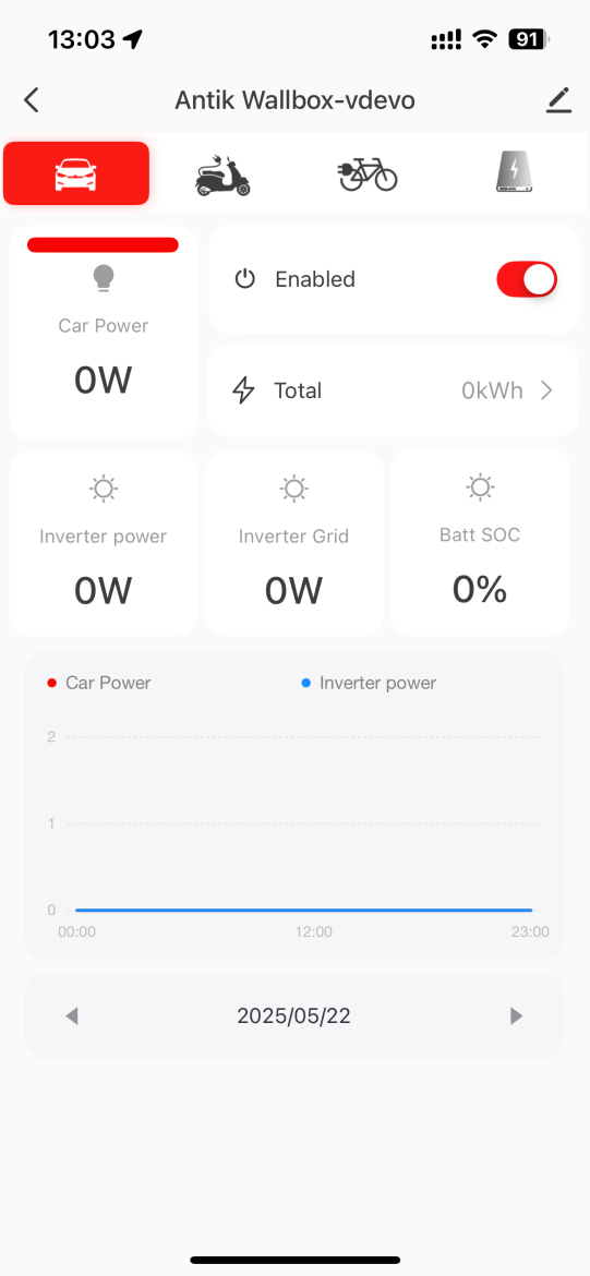 - Možnosť zapnutia/vypnutia (Enabled) – flexibilné riadenie dobíjania priamo z aplikácie.