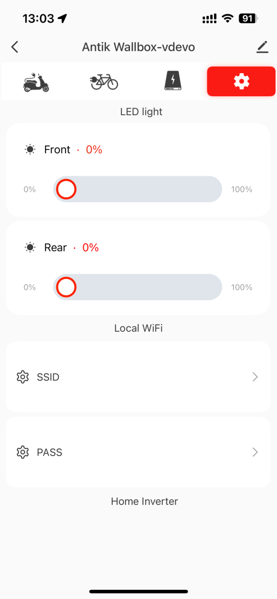 | Napájanie (Bicykel 2) | Zapnuté, Vypnuté | Spínač pre povolenie/zakázanie nabíjania Bicykla 2. | Vypnem Bicykel 2, ak sa Wallbox prepne na sieťový režim. |