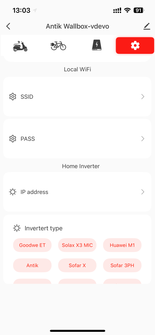 - Typ meniča – jednoduchý výber z podporovaných značiek (Goodwe, Solax, Huawei, Antik, Sofar a ďalšie).