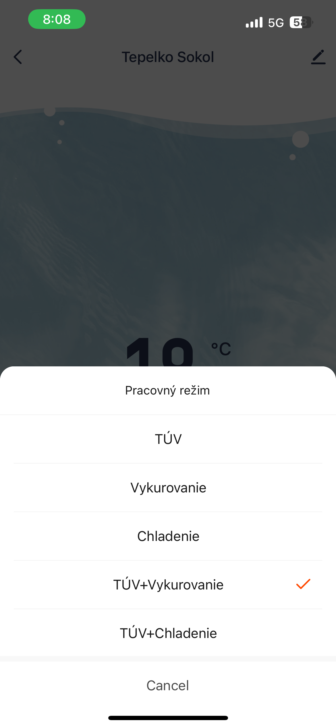 - Výber pracovného režimu čerpadla -TÚV, vykurovanie, chladenie, kombinované režimy