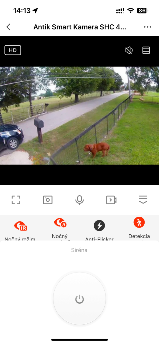- Siréna – manuálne spustí vstavanú sirénu na odstrašenie votrelcov.