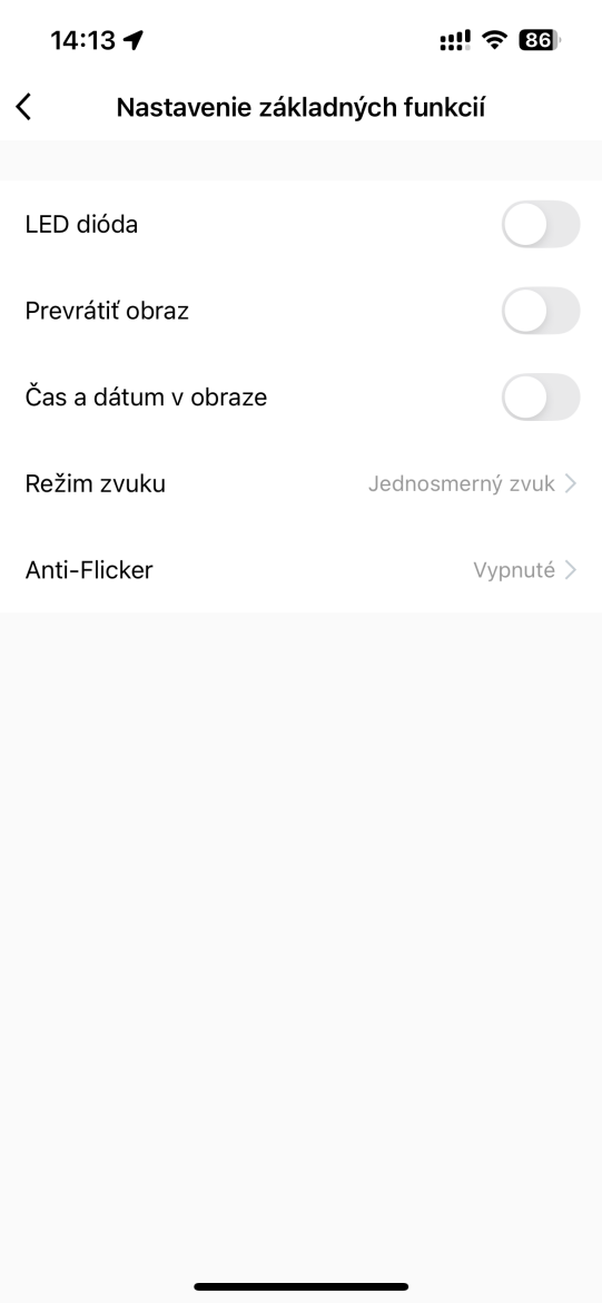 | Preklopenie obrazu | Zapnuté, Vypnuté | Otočí obraz kamery o 180 stupňov. | Ak je kamera namontovaná na strope, zapnem túto funkciu pre správnu orientáciu obrazu. |