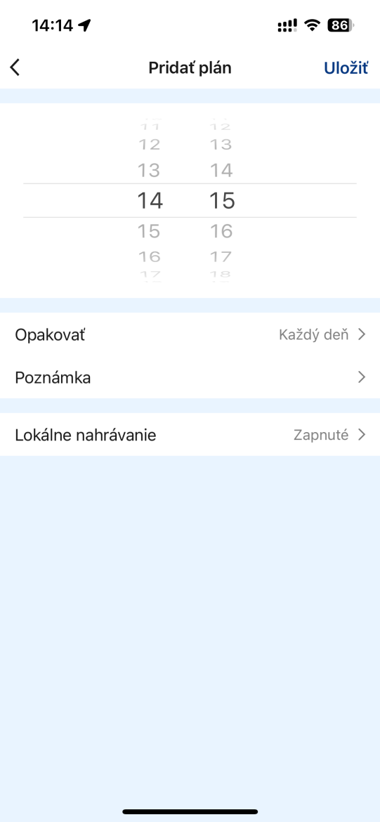 - Časový plán – prispôsobenie záznamu podľa rutiny používateľa