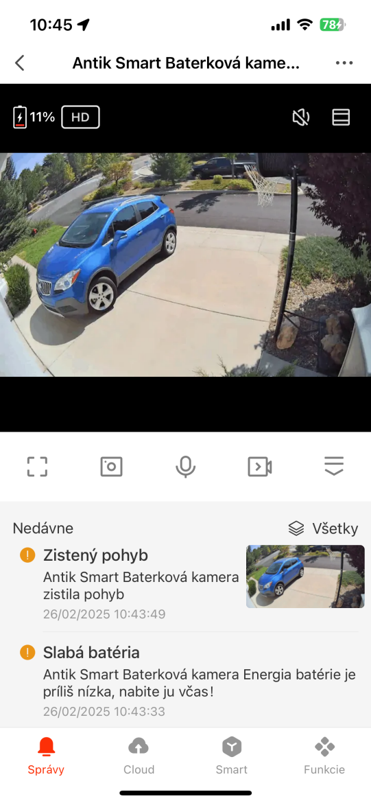 ANTIK Smart Batériová kamera sa jednoducho ovláda cez aplikáciu Antik Smart Home, ktorá ponúka pohodlné možnosti správy a zabezpečenia: