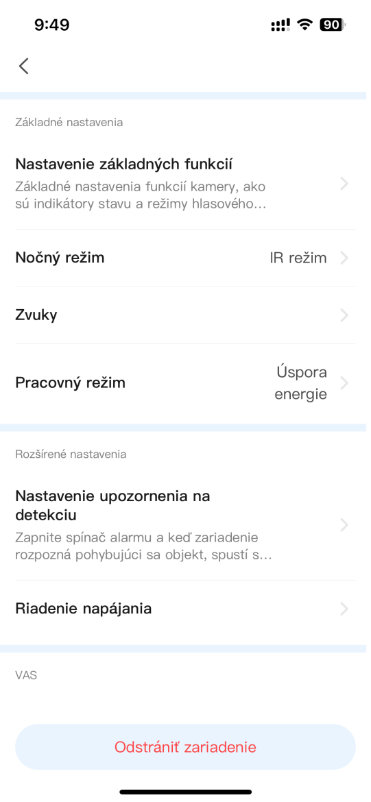 • Odstránenie zariadenia – Jednoduché odpojenie kamery.
