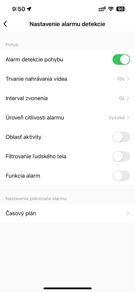 • Alarm detekcie pohybu – Zapnite nahrávanie videa pri každom zistenom pohybe.