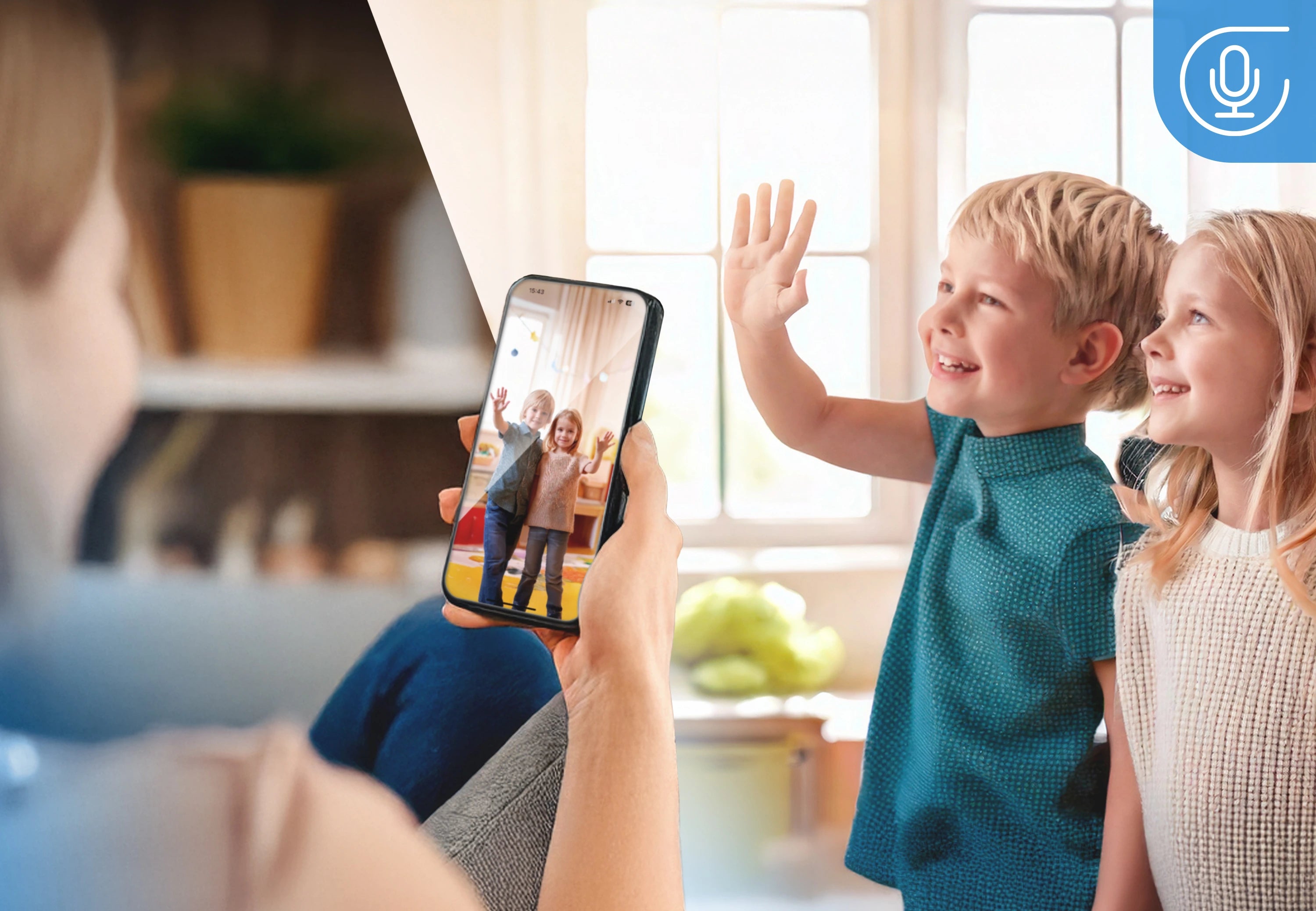 - 💬 Odpovedzte návšteve alebo kuriérovi bez potreby otvárať dvere.