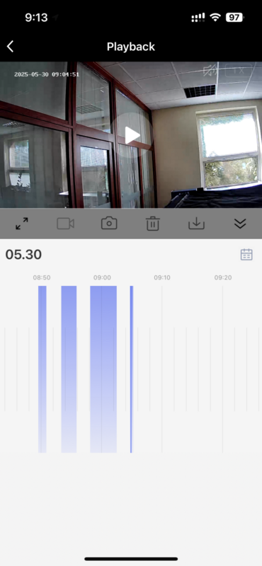 Jednoduché prehrávanie uložených záznamov podľa času a dátumu.