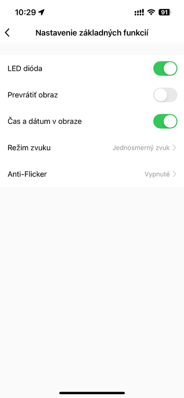- Nastavenie obrazu: otočenie obrazu, detekcia pohybu