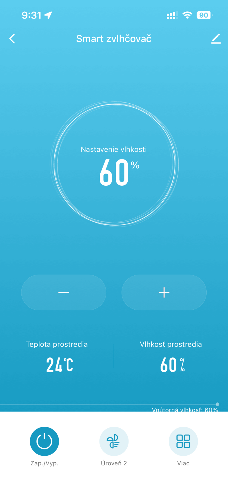 Používateľ má tak vždy prehľad o aktuálnych hodnotách a môže plynulo upravovať intenzitu zvlhčovania podľa potreby.
