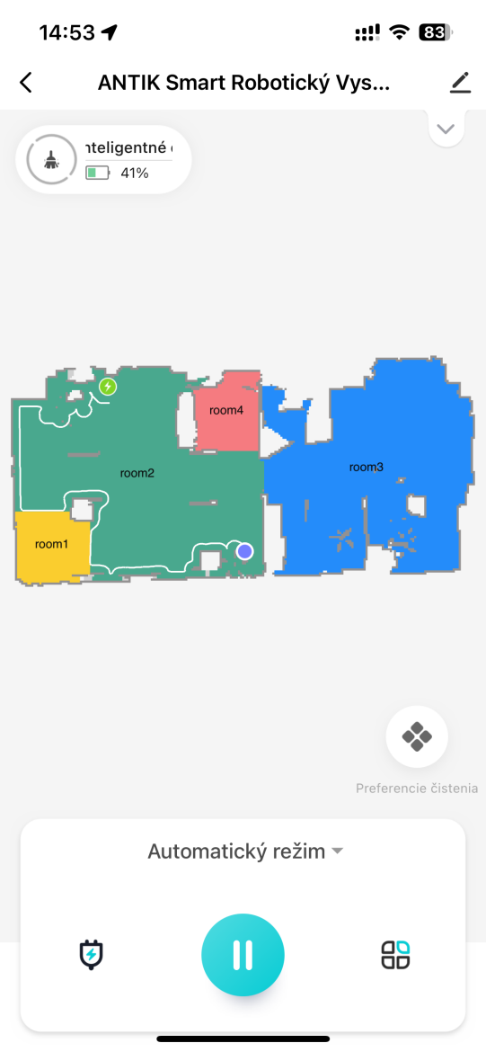 • Čistenie po miestnostiach – možnosť vybrať konkrétnu miestnosť na upratovanie