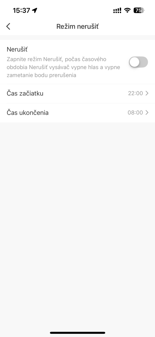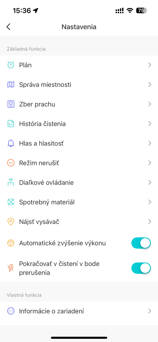 • Komfort: režim Nerušiť, história čistenia, spotrebný materiál, notifikácie.