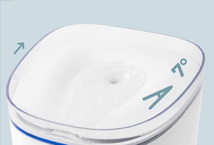 Technológia filtrácie vody inšpirovaná horským potokom zaručuje, že váš domáci miláčik bude mať prístup k dostatočnému množstvu sviežej, čistej vody kedykoľvek počas dňa aj v noci. 7° uhol umožňuje vašim miláčikom pohodlne piť v prirodzenej polohe bez namáhania chrbta.