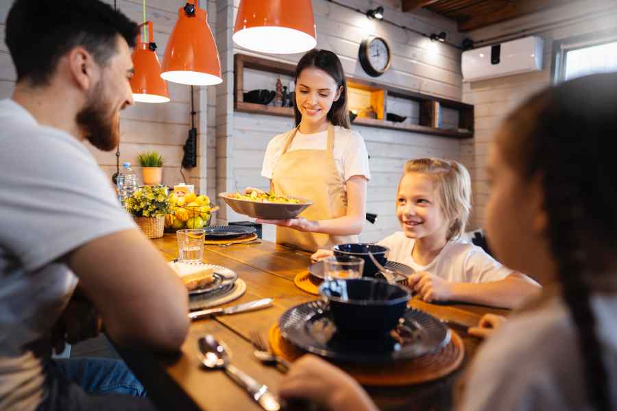 Stlačením predvoleného tlačidla sa spustí scéna "Rodinná večerná pohoda"- aktivuje sa inteligentné tlmené osvetlenie v kuchyni a obývačke, dávkovač krmiva podá porciu nedočkavému psíkovi/mačičke, zatiaľ čo zvlhčovač rozptyľuje jemnú hmlu pre uvoľnenú.