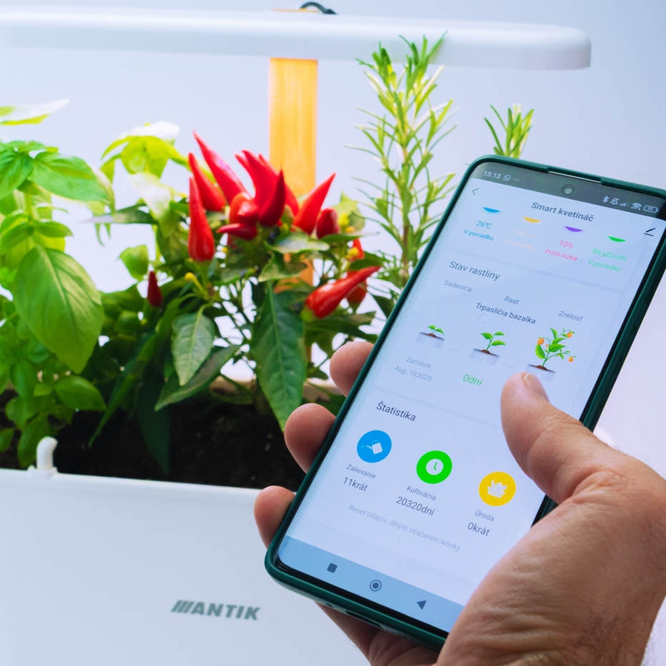 - Plná kontrola v aplikácii: Sledujte rast, upravujte podmienky a dostávajte upozornenia na diaľku.