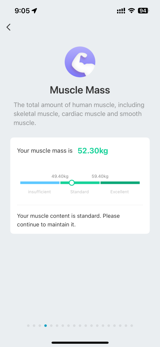 Táto váha nielenže meria základné hodnoty ako hmotnosť a BMI, ale tiež poskytuje podrobné údaje o hmotnosti bez tuku, obsahu telesnej vody, hmotnosti kostí a ďalších kľúčových metrikách. Tieto informácie vám pomáhajú hlbšie porozumieť vašej telesnej kondícii a jej špecifickým potrebám.