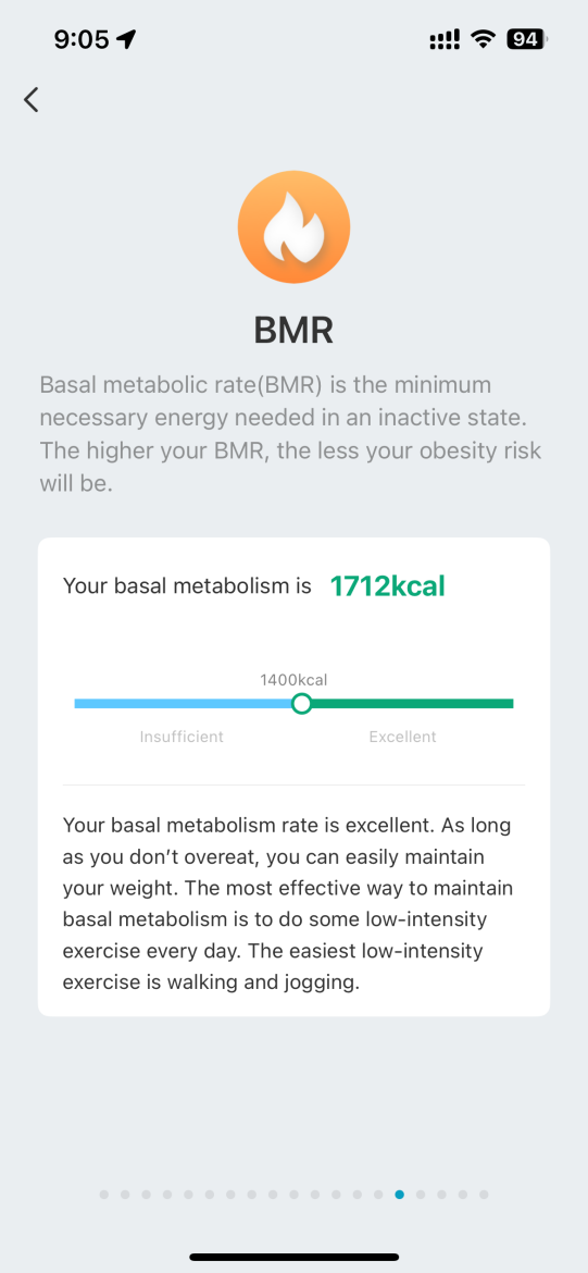 Dodatočné meranie bazálneho metabolického indexu (BMR) a metabolického veku poskytuje cenné informácie pre prispôsobenie vášho životného štýlu a stravovacích návykov, aby vyhovovali osobitým potrebám vášho tela.