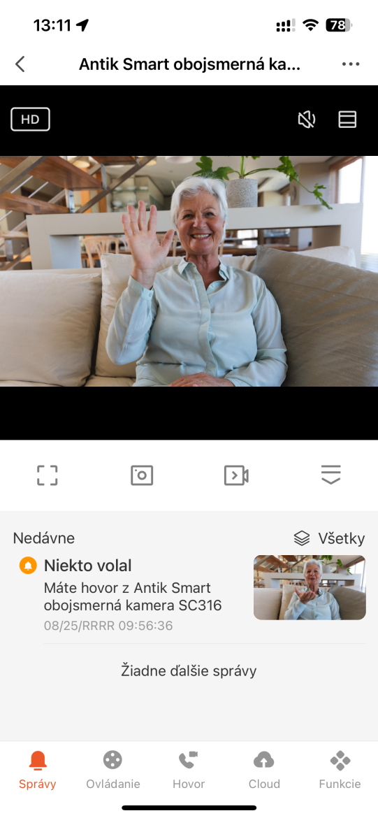 Užívateľ má úplnú kontrolu nad históriou komunikácie s kamerou.
